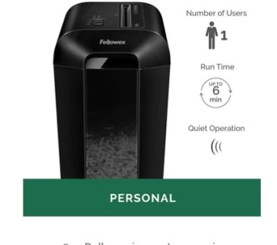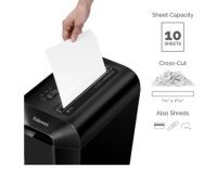 ******* מגרסת נייר משרדית Fellowes LX65, (Fellowes), מספר דפים לגריסה :10, כמות דפים מומלצת ליום : 100, גודל פתית: P4 – 4×40 Cross-Cut, נפח מיכל : 22 ליטר, זמן ריצה : 6on/20off, מידות (HxWxD mm): 407 x 233 x 371