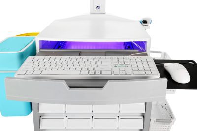 במגירת המקלדת אף קיימת נורת UV לחיטוי נוסף של המקלדת והעכבר בעת טעינת העגלה.