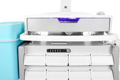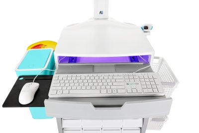 המשטחים החיצוניים של עגלות EZ עשויים ABS אנטי בקטריאלי המסייע לשמור על סביבת עבודה נקייה ובטוחה וכן לשמור על בקרת זיהומים. נורת ה- UV בתוך מגירת המקלדת מסייעת בשמירה וחיטוי נוסף של המקלדת והעכבר.