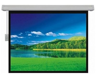 מסך הקרנה גלילה חשמלי הניתן לתליה על קיר או תקרה .