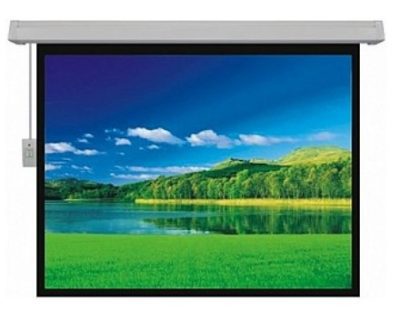 מסך הקרנה גלילה חשמלי הניתן לתליה על קיר או תקרה .