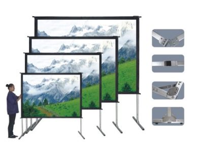 מסך מסגרת – מסך מתקפל נייד הכולל 2 בדים להקרנה קדמית ואחורית , קונסטרוקצית אלומיניום ומזוודת אחסון ניידת