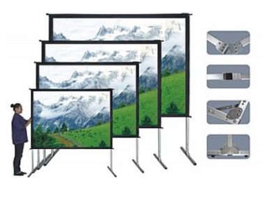 מסך מסגרת – מסך מתקפל נייד הכולל 2 בדים להקרנה קדמית ואחורית , קונסטרוקצית אלומיניום ומזוודת אחסון ניידת